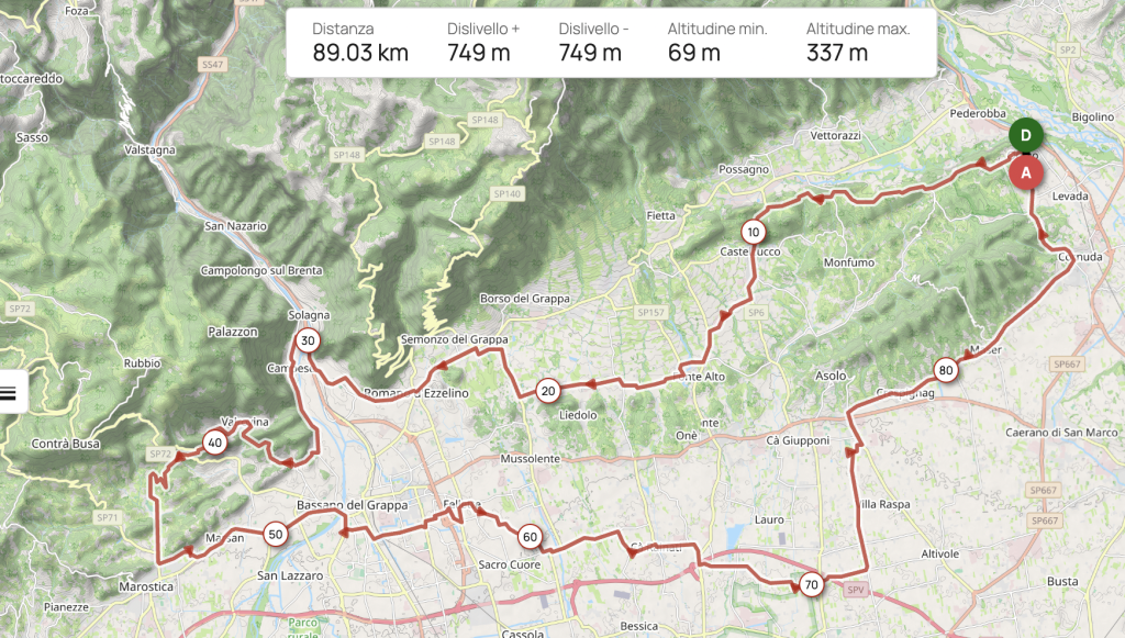 Giro: BASSANO – LA ROSINA – CRESPANO. 90 km